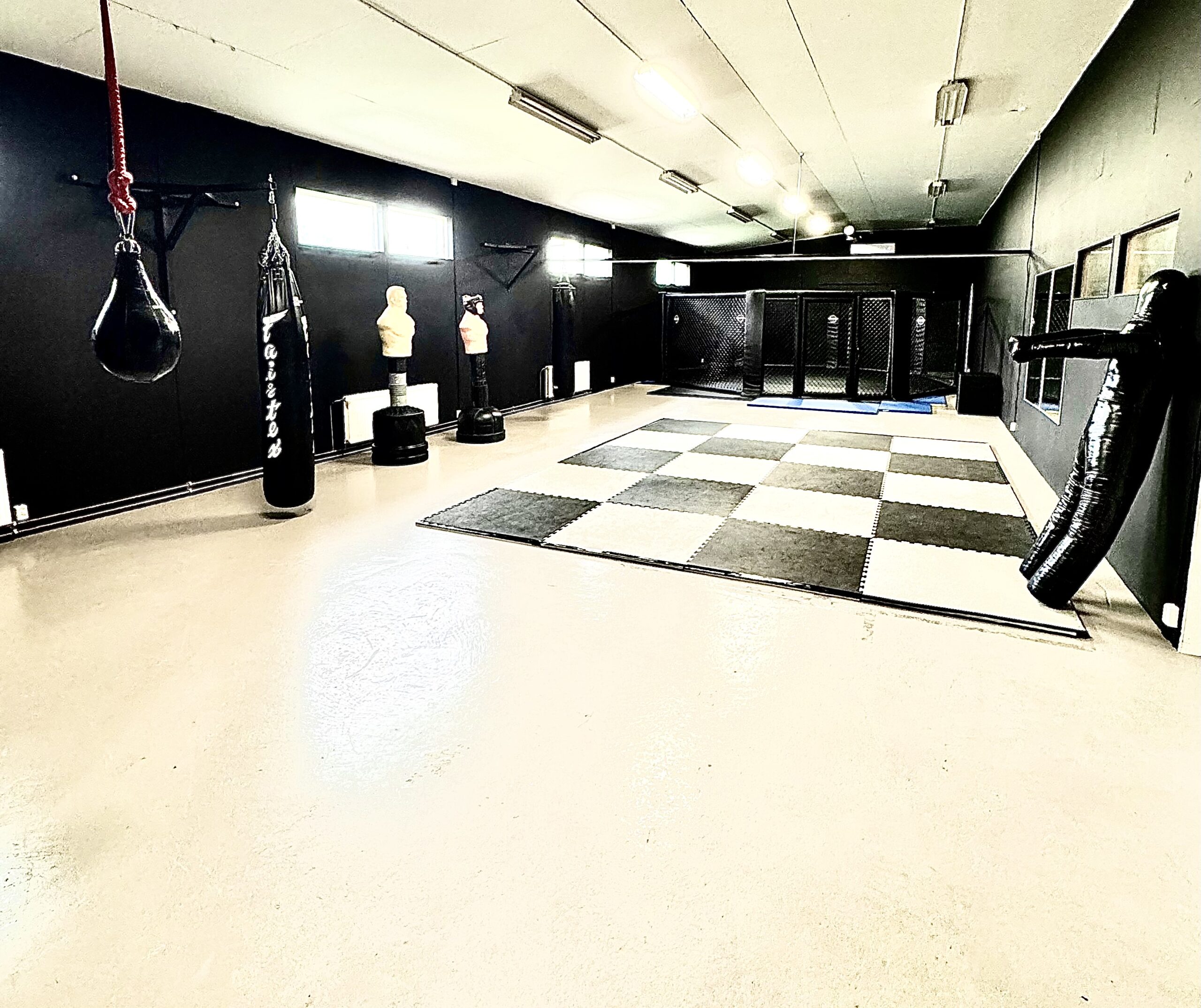 4×5 metrin tatami + 4×4 metrin tatami, potkusäkki x 2, Bowling Bag -nyrkkeilysäkki, vesisäkki, nyrkkeilysäkki, maissipallo, paininukke, vapaasti seisova nyrkkeilykeho x 2